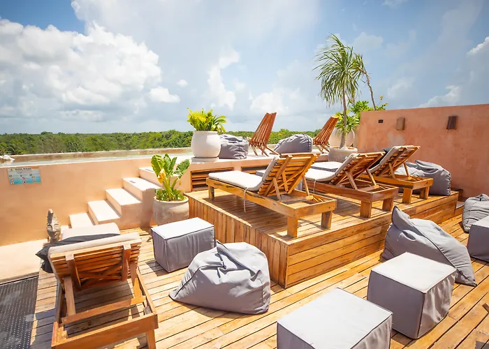 Nuee Hotel & Beach Club er et 4-stjernet hotel 2 km fra Las Palmas Offenlige Strand og 3 km fra De Arkæologiske Udgravninger i Tulum. Alle vil nyde en privat pool og beundre by udsigt som tilbydes fra 26 værelser.
